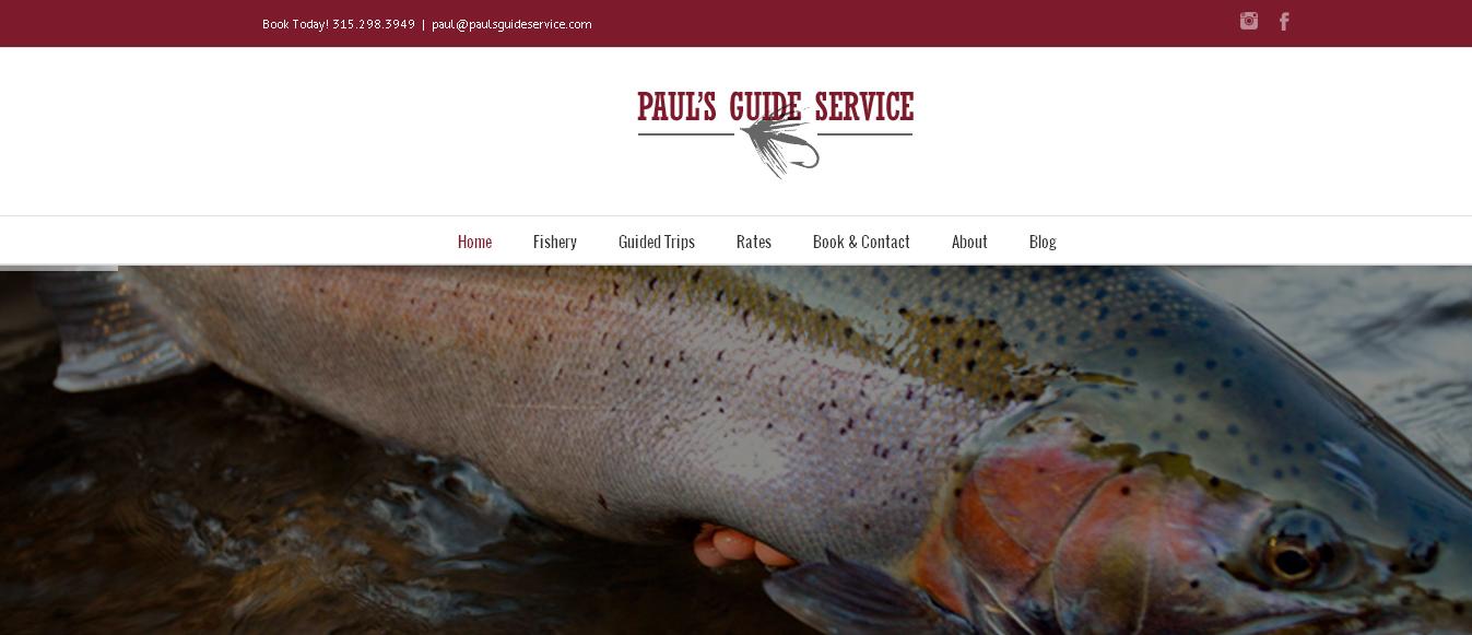 Checkout Our New Website Welcome to the redesigned Paul’s Guide Service. Take a few minutes to check it out along with our Social media sites. Paul By Paul Conklin|March 27th, 2014|Categories: Uncategorized|0 Comments Share This Story, Choose Your Platform! FacebookTwitterRedditLinkedInWhatsAppTumblrPinterestVkEmail About the Author: Paul Conklin Related Posts Lower Salmon River Fishing Report – Browns & Steelhead on the Swing Lower Salmon River Fishing Report – Browns & Steelhead on the Swing Winter Trout Spey Fishing in Upstate New York Winter Trout Spey Fishing in Upstate New York 10 Tips for Swinging Flies in Low, Clear Water for Steelhead 10 Tips for Swinging Flies in Low, Clear Water for Steelhead Steelhead Season Kicks Off Strong on the Salmon River Steelhead Season Kicks Off Strong on the Salmon River Leave A Comment Cancel replyComment Save my name, email, and website in this browser for the next time I comment.